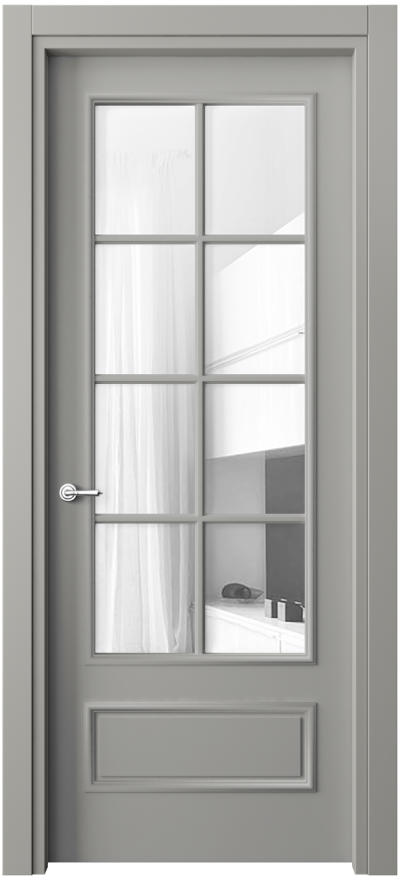 Дверь межкомнатная 8112 МНСР Прозрачное стекло. Цвет Матовый нейтральный серый. Материал Гладкая эмаль. Коллекция Paris. Картинка.